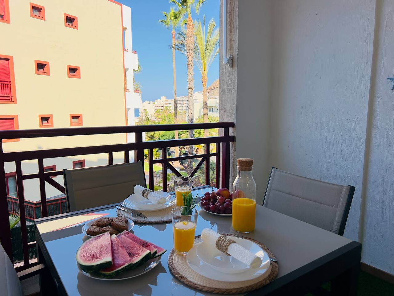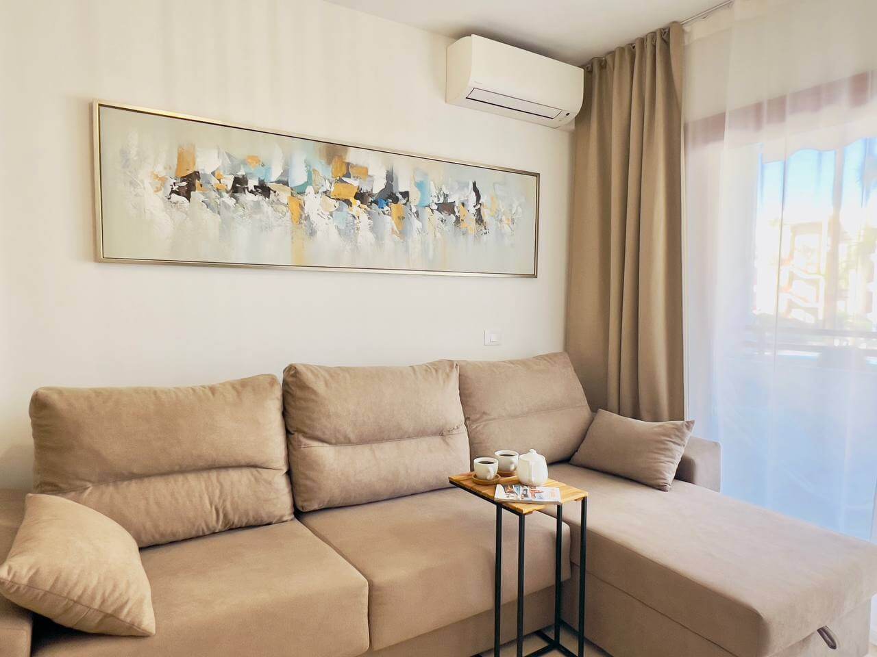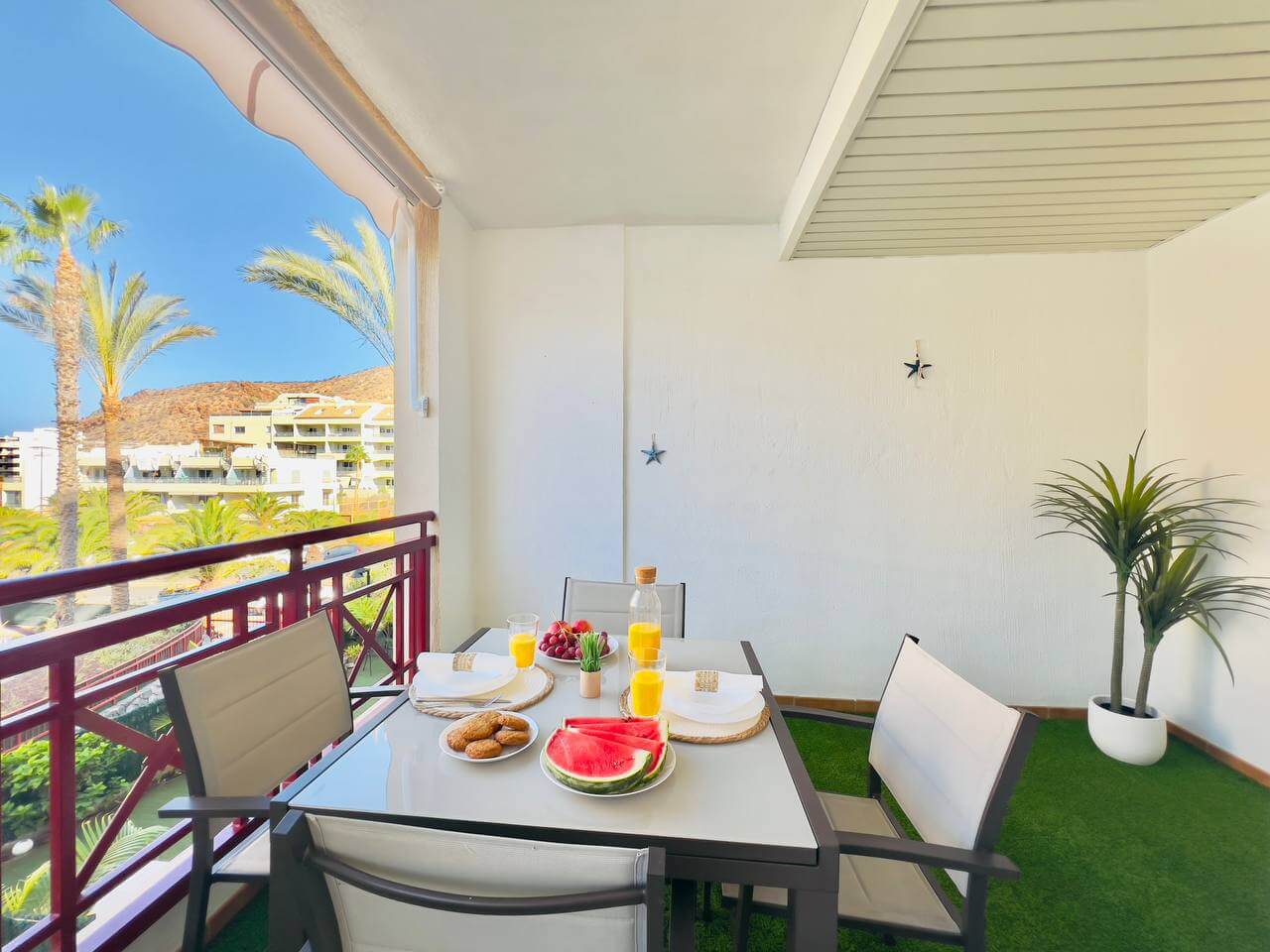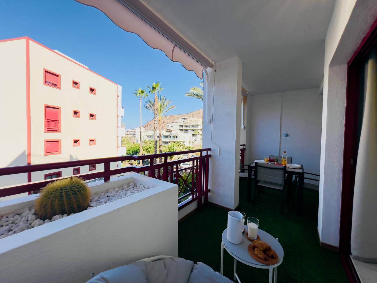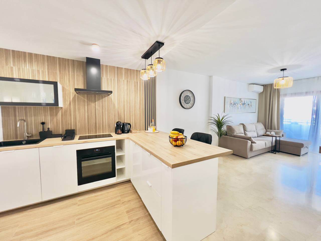 Этот современный апартамент в комплексе Лос Баландрос, Паль Мар, радует удачной планировкой и стильным интерьером. Светлая гостиная с уютной зоной отдыха плавно переходит в кухню с барной стойкой — это удобное пространство для жизни и приёма гостей.