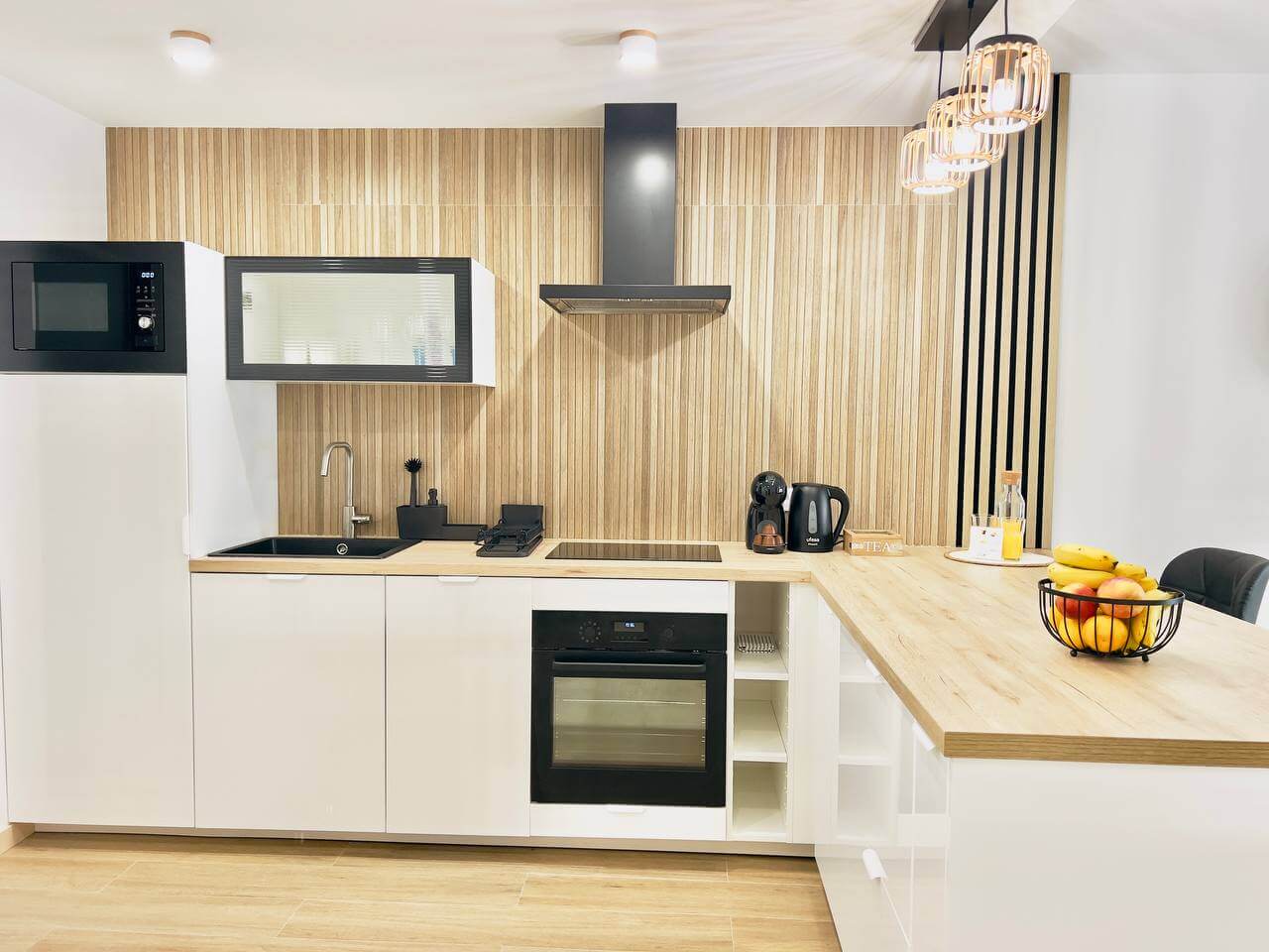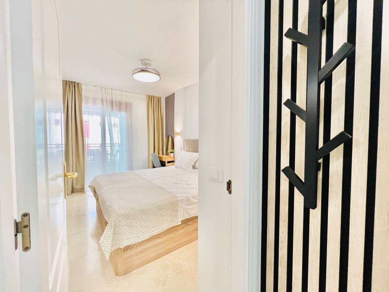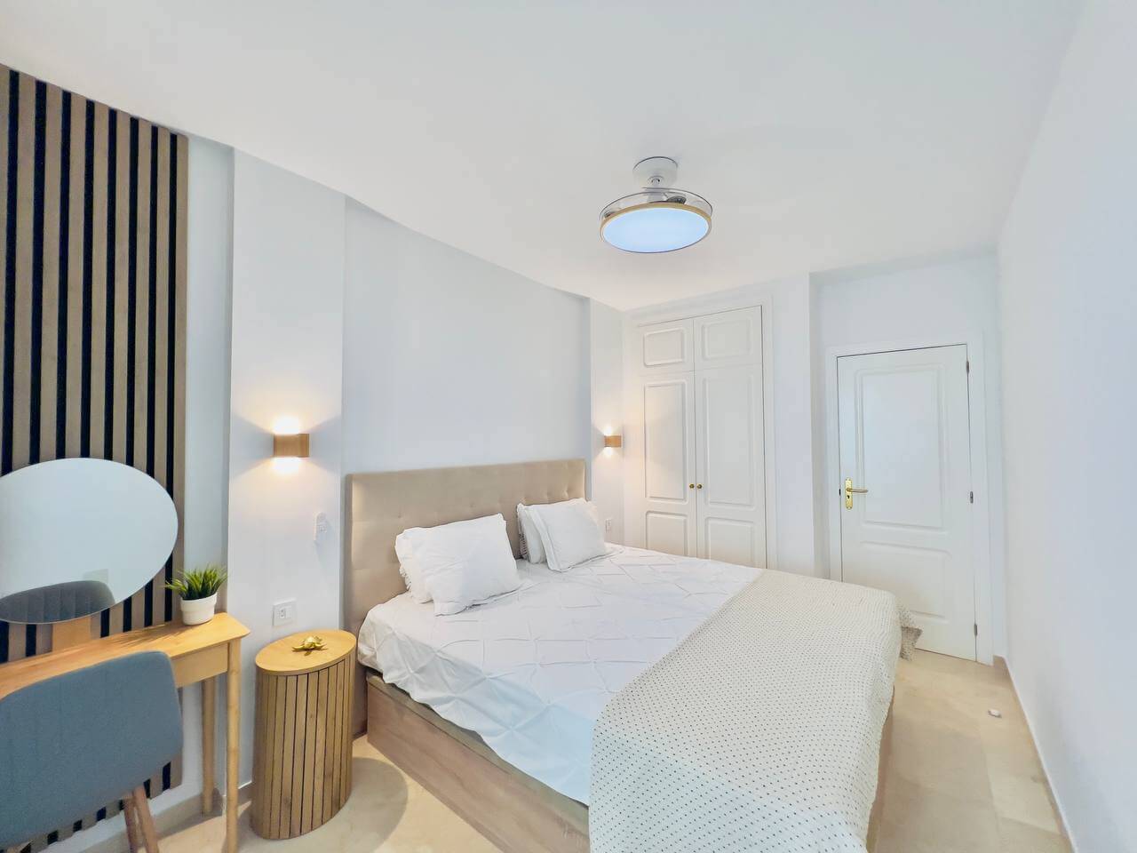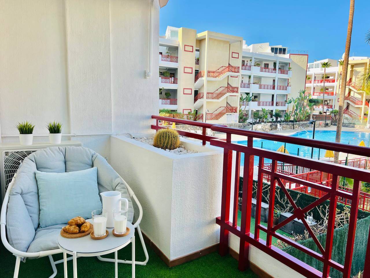 Этот современный апартамент в комплексе Лос Баландрос, Паль Мар, радует удачной планировкой и стильным интерьером. Светлая гостиная с уютной зоной отдыха плавно переходит в кухню с барной стойкой — это удобное пространство для жизни и приёма гостей.